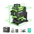 Huepar 704CG laser tool provides four 360° laser planes. The top horizontal line is for ceiling installation, while the bottom horizontal line is for floor tiling. One horizontal and one vertical 360° line intersect at 90°, allowing for quick and easy square layout. Short press the H/V button on the keypad to switch the horizontal and vertical laser lines separately.